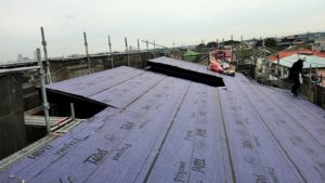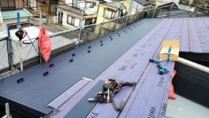 既存の屋根の上から高性能な防水シートと隙間なく貼り込みます。