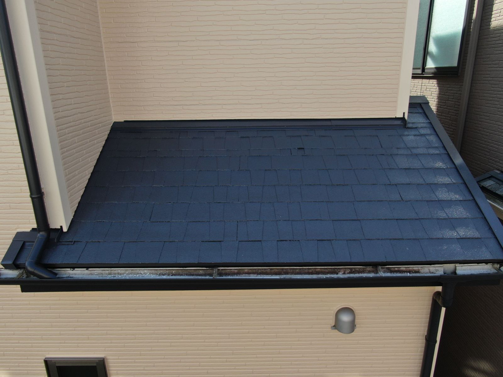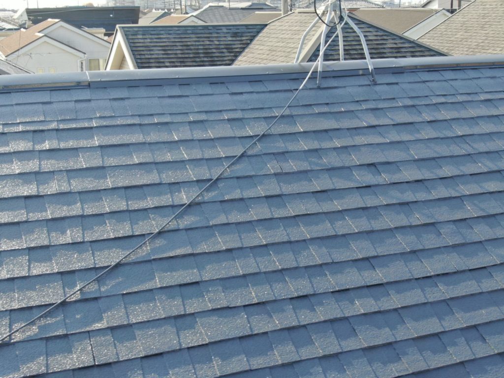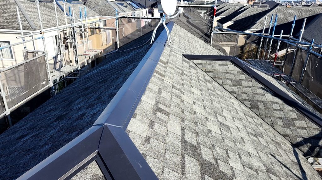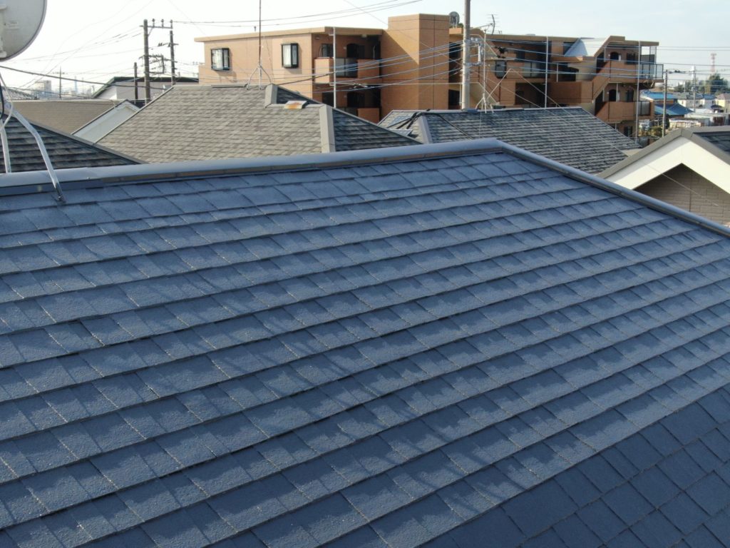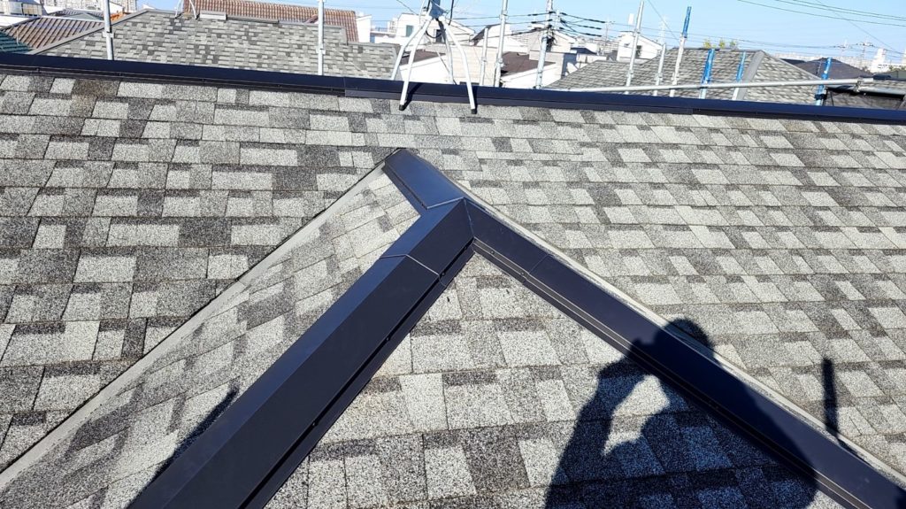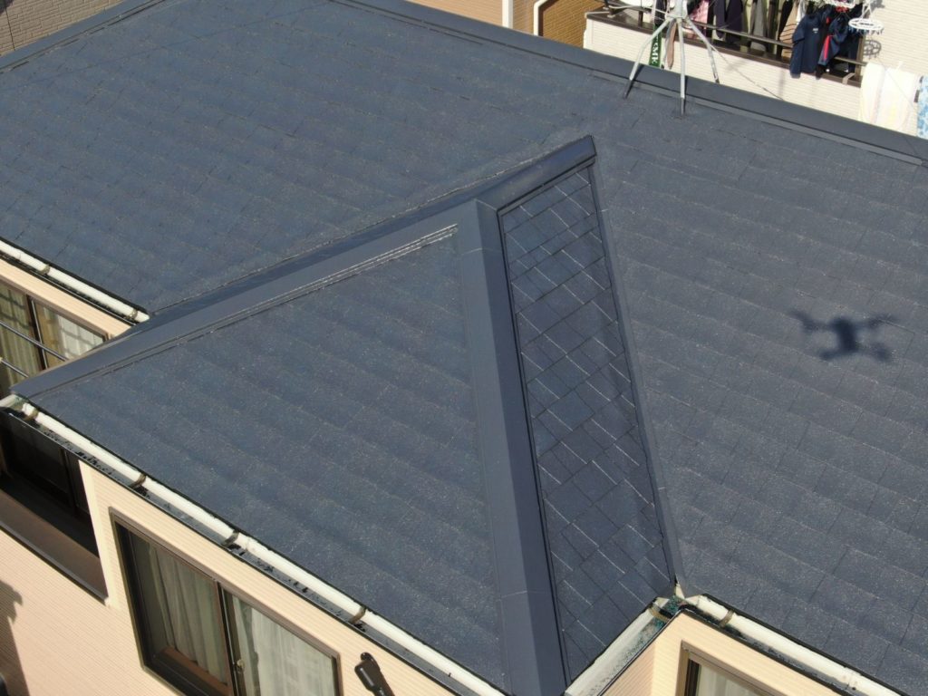 今回アスファルトシングルという屋根材でしたので、水性の屋根塗料を使用し、アスファルトシングルにはタスペーサーが使用できないので重なり部分をしっかり縁切り作業を行い、丁寧に施工いたしました。