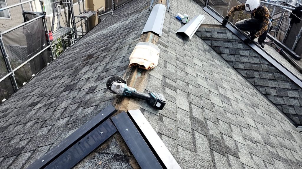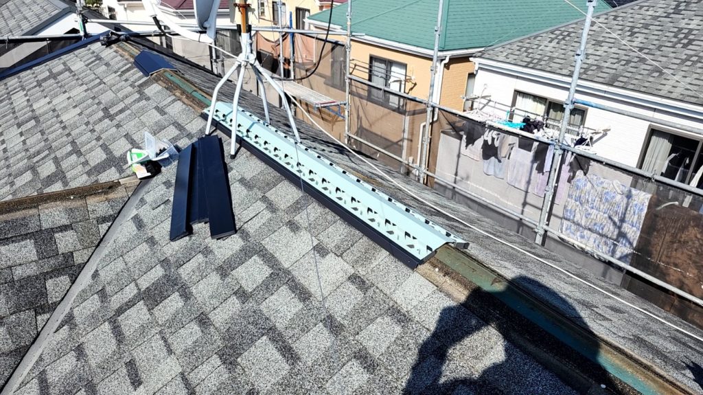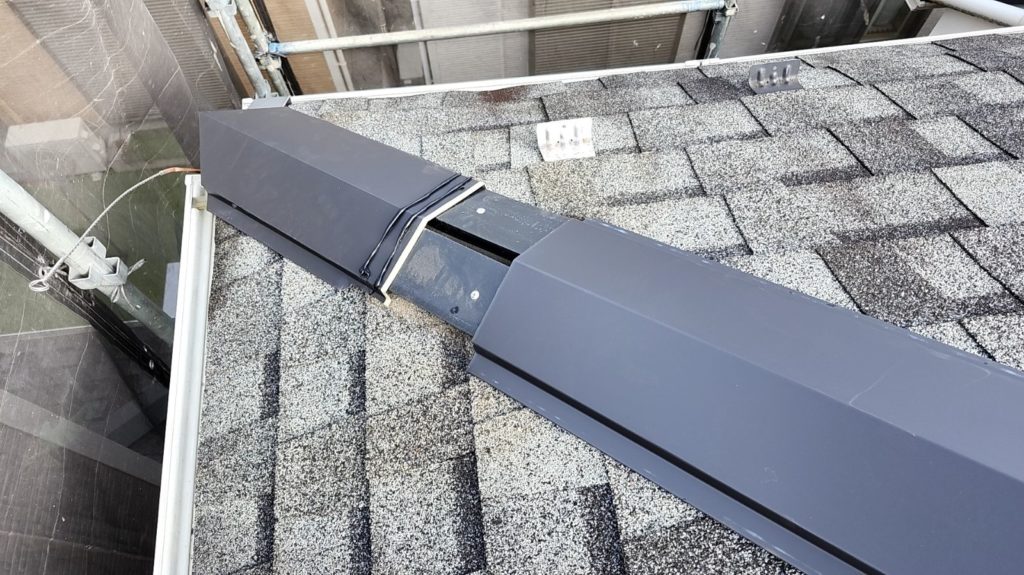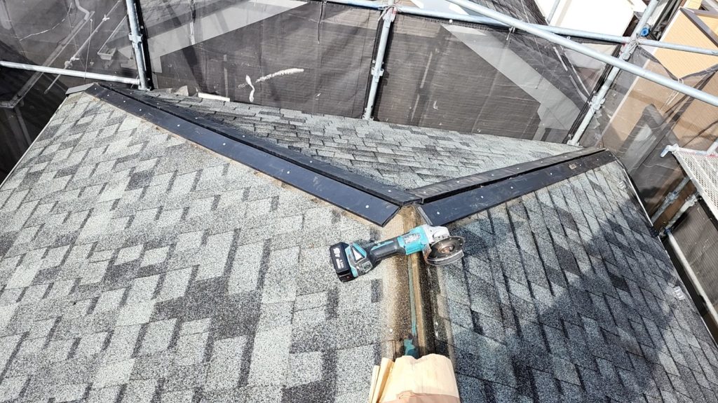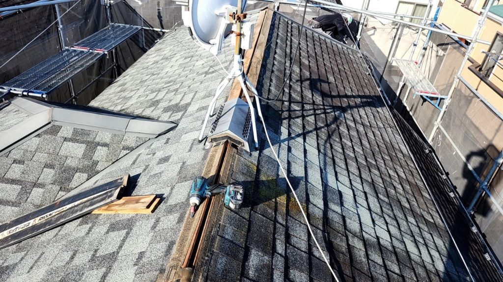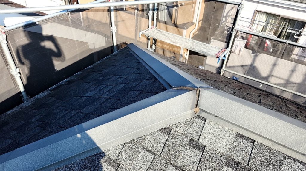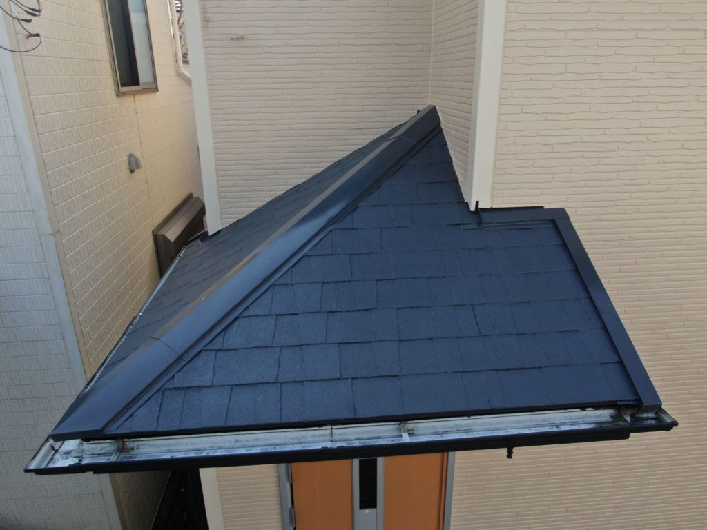 今回アスファルトシングルという屋根材でしたので、水性の屋根塗料を使用し、アスファルトシングルにはタスペーサーが使用できないので重なり部分をしっかり縁切り作業を行い、丁寧に施工いたしました。